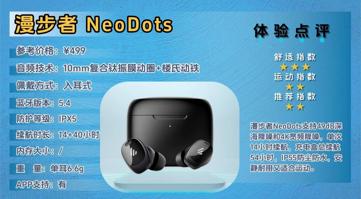 漫步者NeoDots主打高效降噪与长续航,适合通勤、办公以及日常轻度运动,让你在嘈杂环境中也能专注听音。