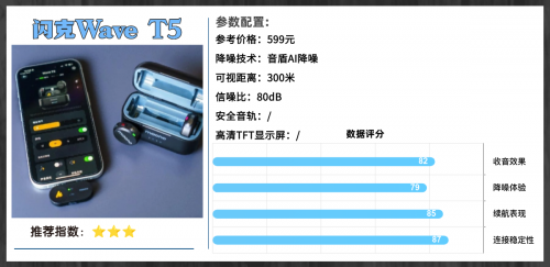 1:这款闪克Wave T5领夹麦搭载高灵敏度拾音头,支持48kHz/24bit无损采样,收音清晰细腻,能精准捕捉人声细节,内置智能增益调节功能,可自动平衡输出电平,避免爆音与音量过低问题;