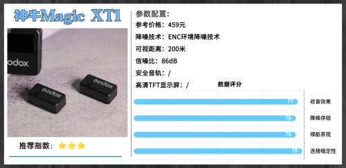1:这款神牛Magic XT1领夹麦采用创新收发一体式设计,搭载ENC环境降噪技术+低切功能,信噪比≥70dB,底噪控制出色,室内收音纯净度高,2档增益调节可精准适配不同音量场景;