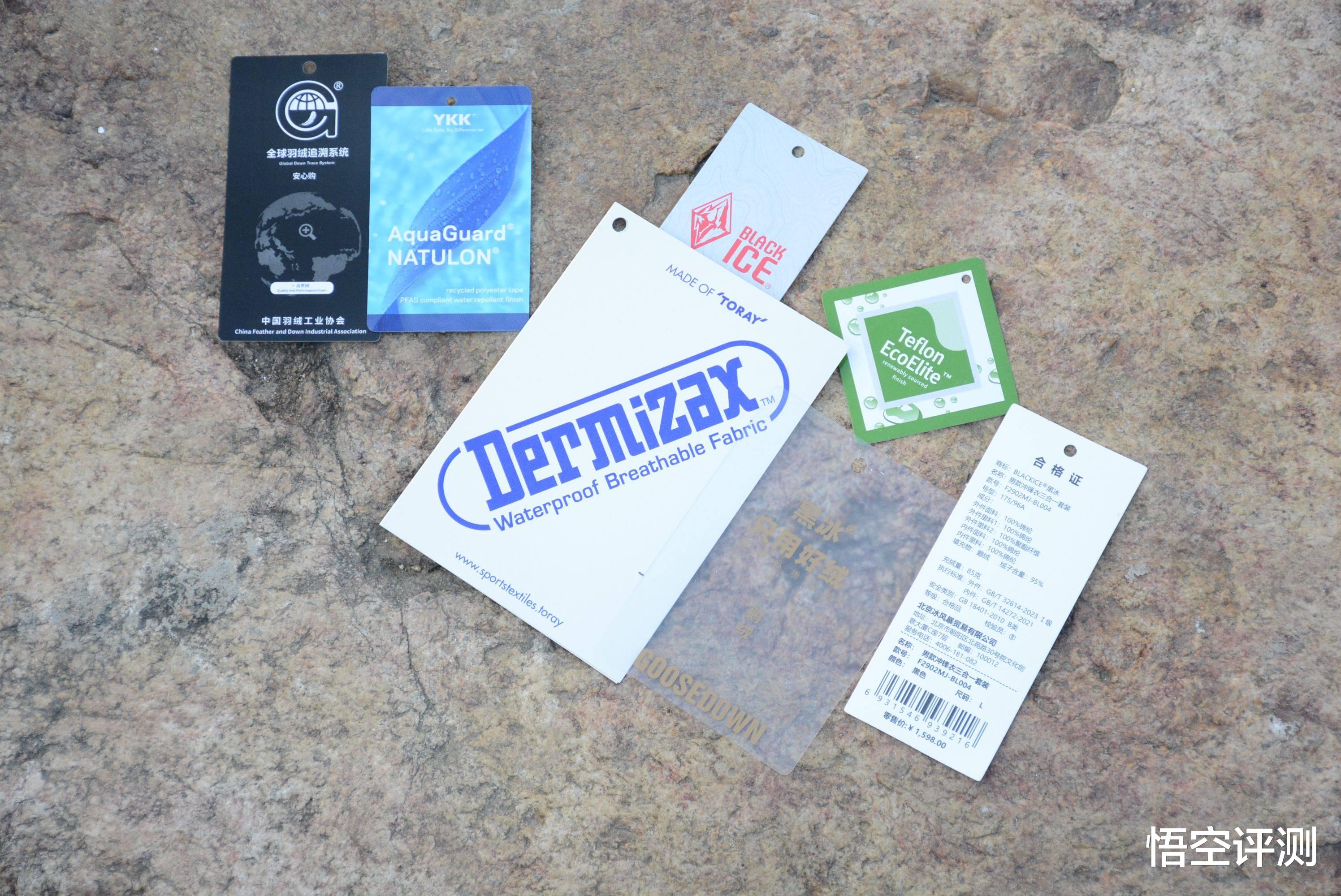 Dermizax科技面料,防水20000mmHzO (JIS),透湿17000g/(m:-24h) (JIs),防磨80000次,拒油性>4级。