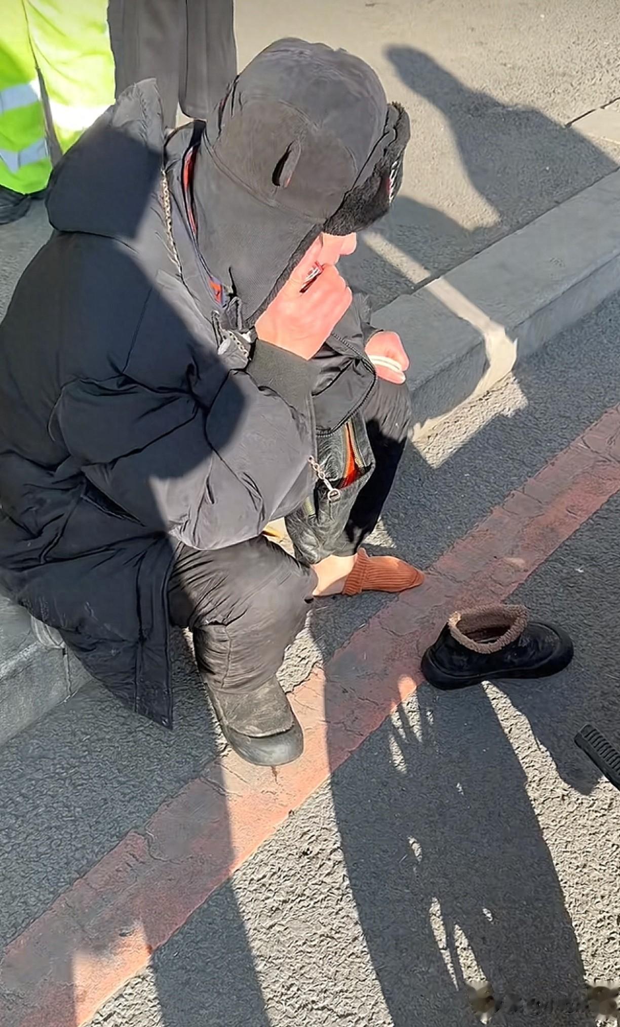 值得一提的是。大妈一开始为什么脱了一只鞋,知情者说,好像是刚出了银行就被出租车撞了一下,导致脚和腿受了伤,所以才把鞋给脱掉。