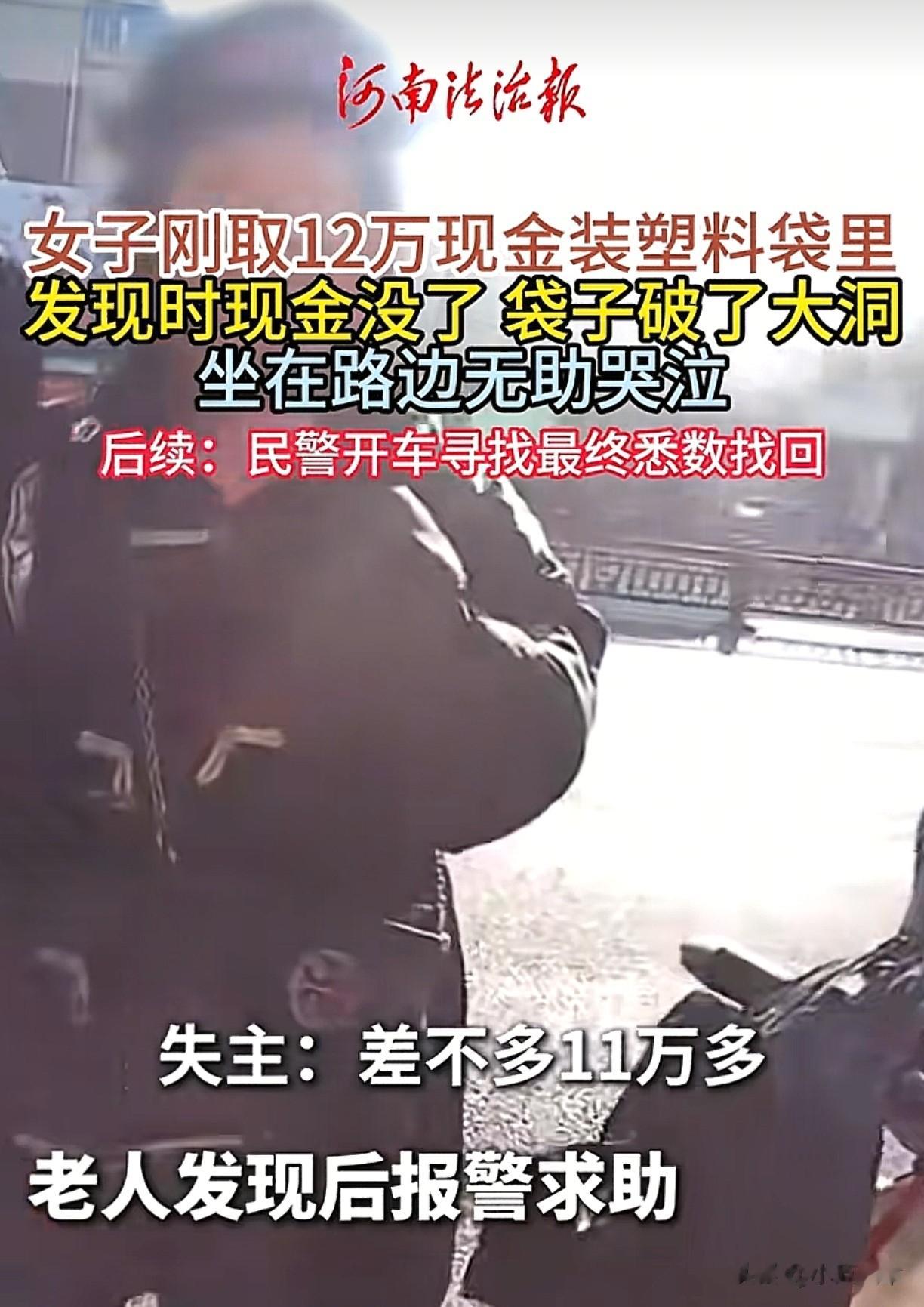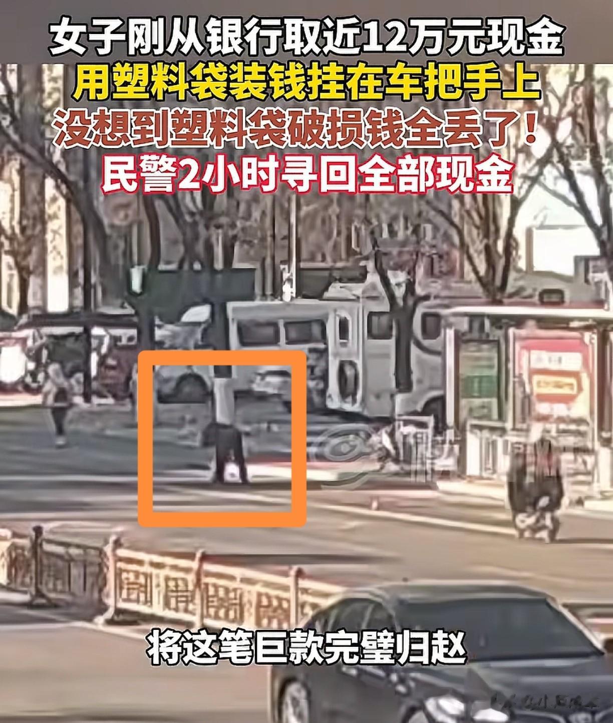相信大家也猜出来了,是自己的粗心大意,才把钱弄丢。要知道这可是将近12万元现金,如此巨款,仅仅是拿着一只薄薄的塑料袋就装起来挂在电动车上,这心也太大了吧。