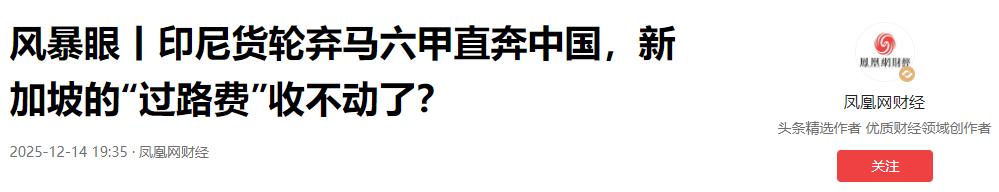 凤凰网财经:风暴眼丨印尼货轮弃马六甲直奔中国,新加坡的“过路费”收不动了?
