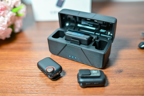系统采用单发单收设计,专注适配单人轻量创作需求,搭载2.4GHz无线传输技术,30米内无遮挡传输稳定,音频延迟低至19毫秒,声画同步流畅。采用无实体按键设计,开机自动配对,通过磁吸实现开关机与充电,操作极简;搭配迷你充电盒总续航超15小时,支持USB-C快充,10分钟补电可使用1小时,大幅提升碎片化创作的便捷性。