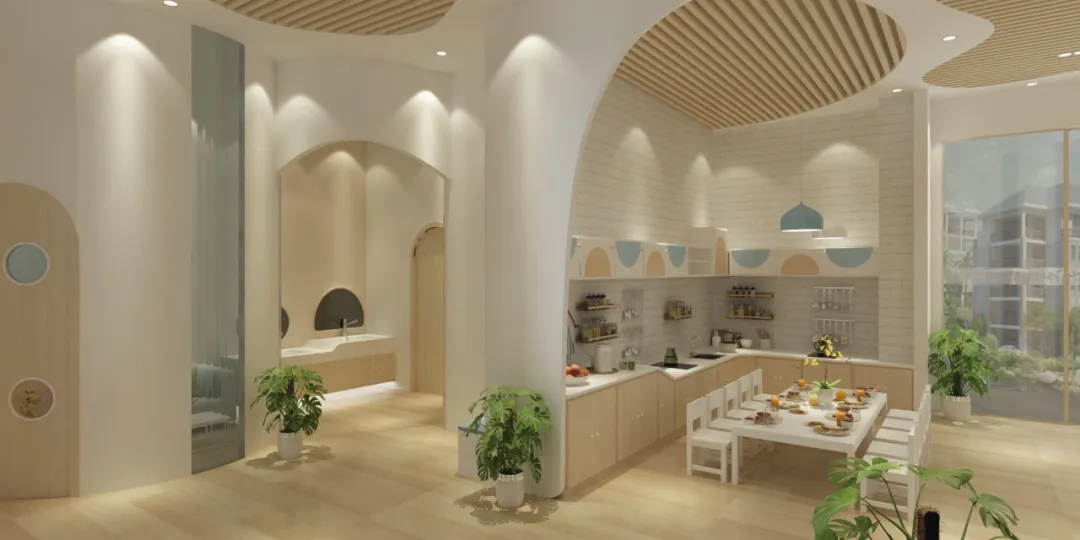 对教师而言,要方便、省事省力,便于休憩和实时看护。这意味着空间设计要考虑:视线无死角,便于观察所有幼儿;操作动线合理,减少来回走动;工作台高度符合人体工学;设有教师休息区,方便短暂休整,还要留有紧急情况下的快速反应通道。