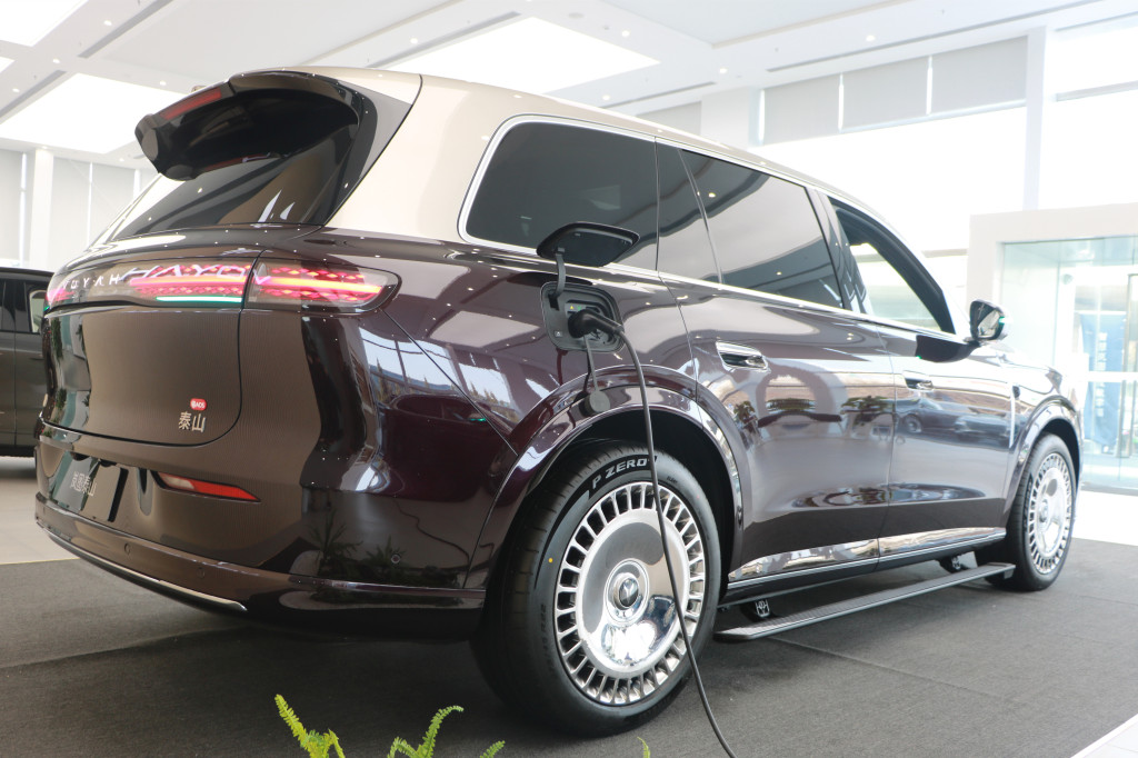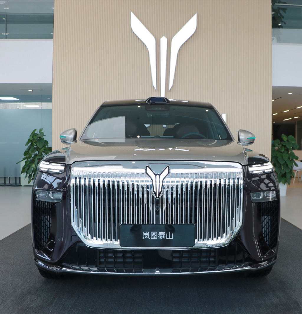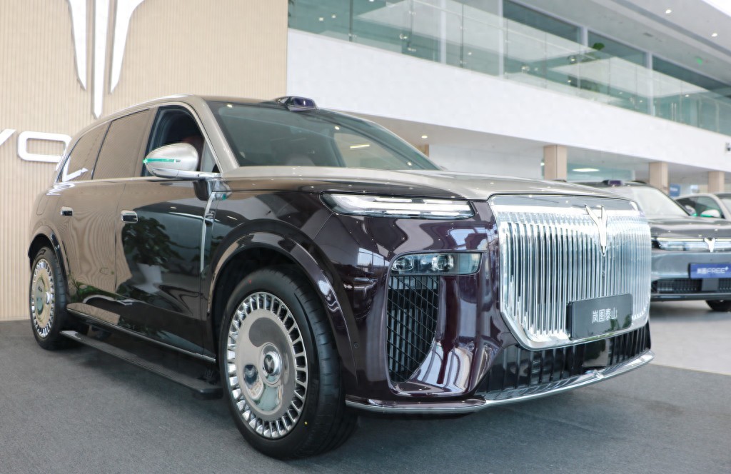 12月19日上午,记者在岚图汽车青岛重庆南路全功能店见到了岚图泰山的实车,确实是有“全明星”范。外观方面,岚图泰山采用家族式鲲鹏展翼设计,车辆整体稳重大气,新车前脸造型方正,配备超大尺寸镀铬直瀑式格栅,视觉效果极具冲击力,颇有劳斯莱斯库里南的气势!在细节上,前格栅发光点亮LOGO与日行灯一起贯穿整个车头,新车还采用了分体式前大灯组设计。