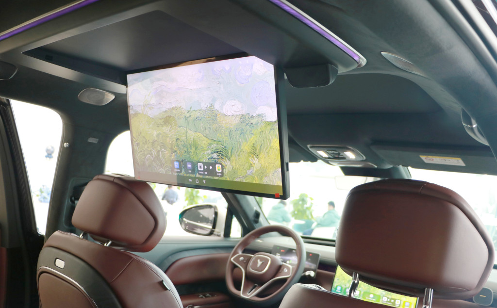 在配置方面,岚图泰山后排配有21.4英寸超大尺寸吸顶屏,二排双AI云舒零重力座椅(具有48颗传感器,配备26个按摩点位与8种按摩模式)等。此外,泰山的二排座椅还配备有3.5英寸超薄扶手屏,可控制座椅、空调、多媒体等功能; 新车车内配备220V插座,具备2.2kW车内放电功率,支持办公设备、冰箱等持续供电。