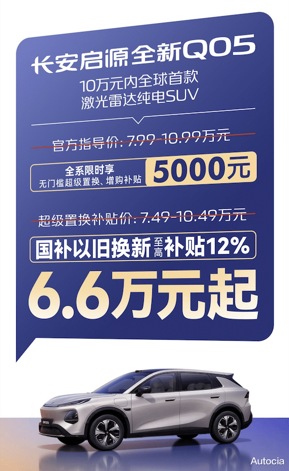 国补已就位,时机不等人!10万元内全球首款激光雷达纯电SUV——长安启源全新Q05,助你一站式锁定政策红利。新年焕车,抢档福利,即刻冲刺,轻松焕新!