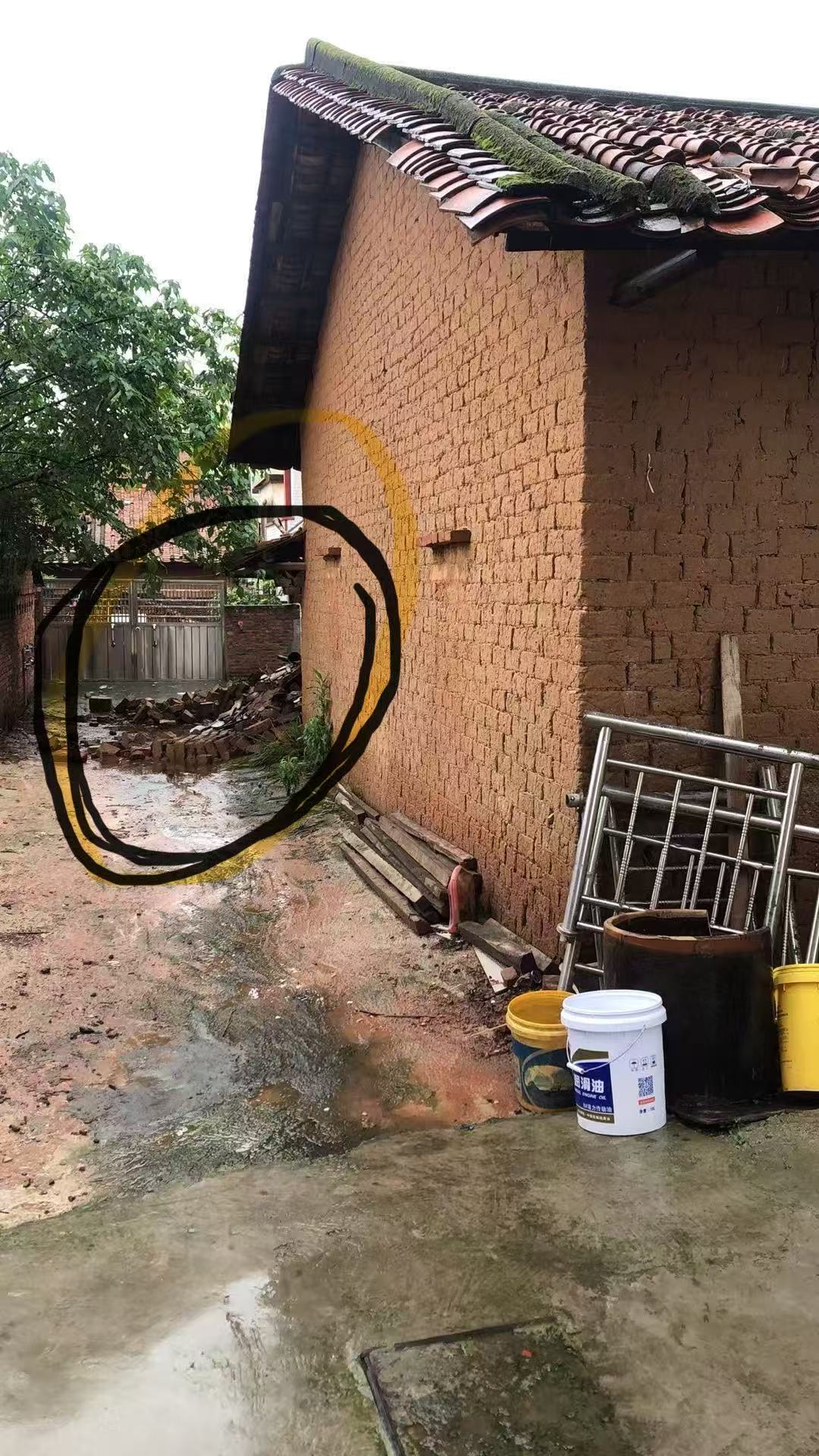 待赖某某返回村中后,才发现涉事楼房存在明显违规建设痕迹,且已对自家一间旧泥砖瓦房造成实质性影响。涉事楼房二楼部分超出原建设范围约两米,更严重的是,施工过程中,建房方擅自将该旧泥砖瓦房后方的排水沟进行填埋,直接切断了房屋的天然排水通道。这间旧瓦房目前无人居住,主要用于堆放木柴、农具等物品,房屋产权登记在赖某某叔叔名下,并未办理过户手续。三十多年前,赖某某的父亲拆掉自家瓦房,为叔叔另建一处房屋,以此换来这间瓦房的使用权。如今叔叔与叔婆均已去世,仅留下一名患有精神疾病的堂兄弟,赖某某目前是该堂兄弟的监护人,这也让房屋及屋内物品的权益维护变得更为复杂。排水沟被填埋后,后续一旦遭遇降雨天气,雨水将无法顺利排出,极易倒灌进房屋内部,导致屋内物品受潮损坏,同时对泥砖结构的房屋主体造成侵蚀,埋下财产与房屋结构安全隐患。