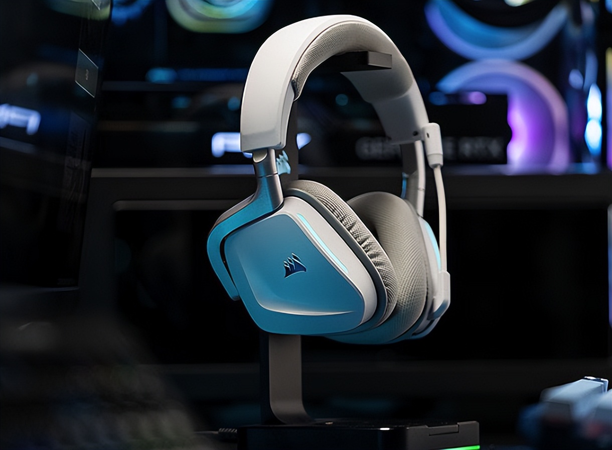 如果你的机箱、键盘、鼠标都是美商海盗船的产品,那么这款天行者v2就是你桌面生态不可或缺的一环。虽然它有无线版本,但有线模式下的表现更加稳健。其外观设计极具辨识度,非圆非方的耳罩造型充满了科幻感,配合那透气性极佳的超细纤维网状织物耳垫,即便在炎热的夏天佩戴也不会感到闷热。