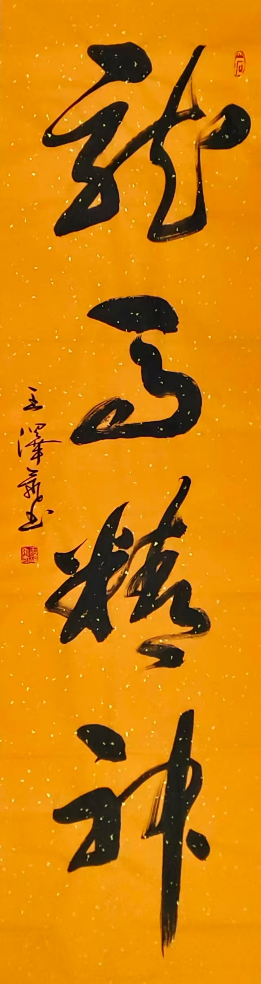 王泽飞,中国一线实力派书法家,国家一级美术师,国礼特供艺术家,著名榜书大家。1963年7月生,浙江义乌人,大专学历。受父辈影响,自幼喜欢写写画画,临摹了历代名家王羲之、柳公权、颜真卿、欧阳询等碑帖。正、行、草、隶、篆各体兼能,尤擅特大抓笔俯地书写1-4米见方的正体、行草书,篆刻、小楷也具相当功底。
