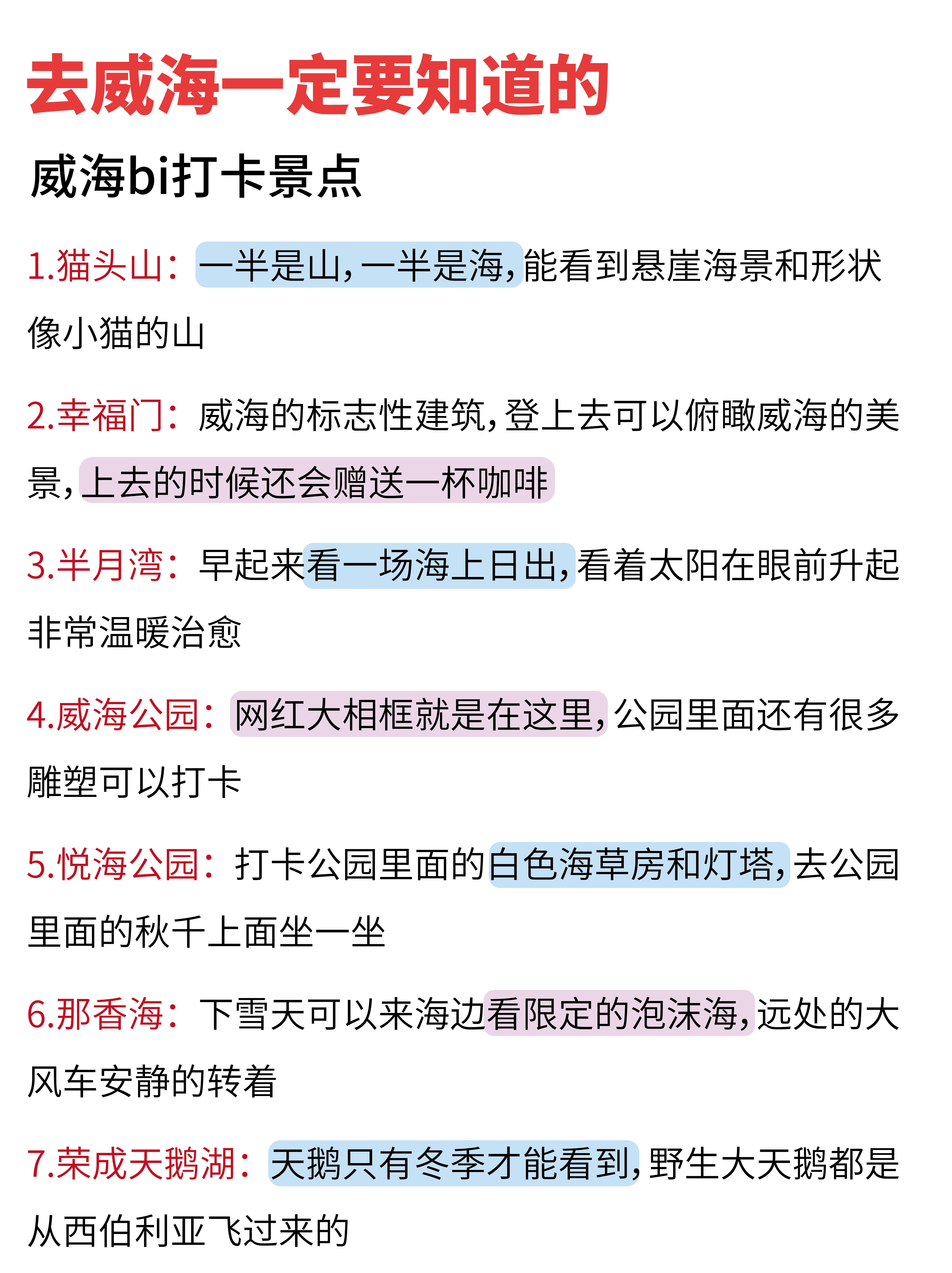 有没有姐妹计划在这几天要来威海游玩🥳的啊,给大家整理了一些关于威海景点🏖️、威海美食😋的玩法