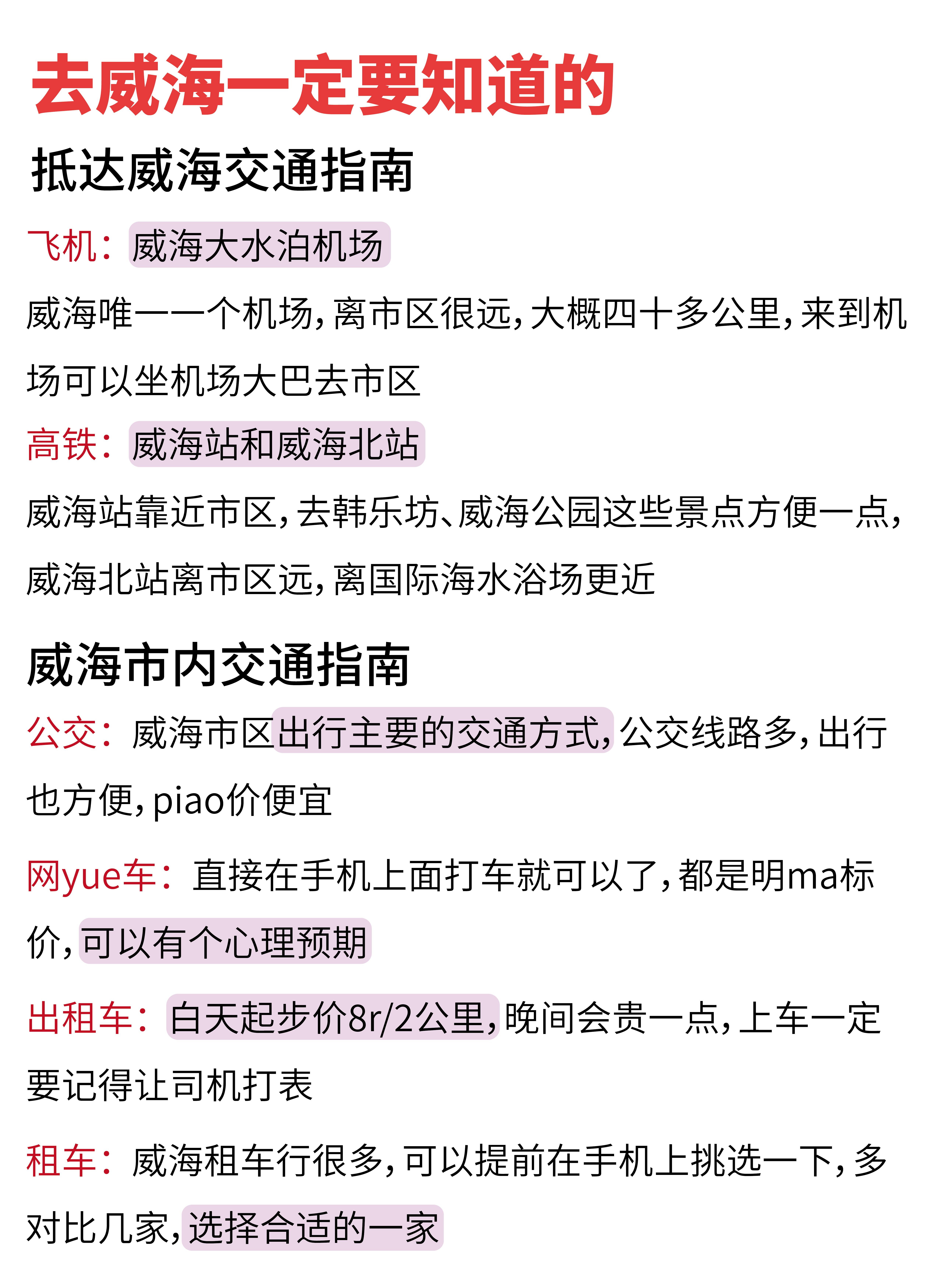 来威海可以坐高铁🚅,📍威海站靠近韩乐坊,📍威海北站靠近国际海水浴场,可以根据自己的行程选择合适的车站🚉,飞机场✈️离市区有点太远了,40多公里呢