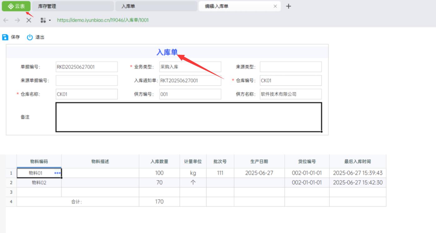 云表做入库单的业务逻辑