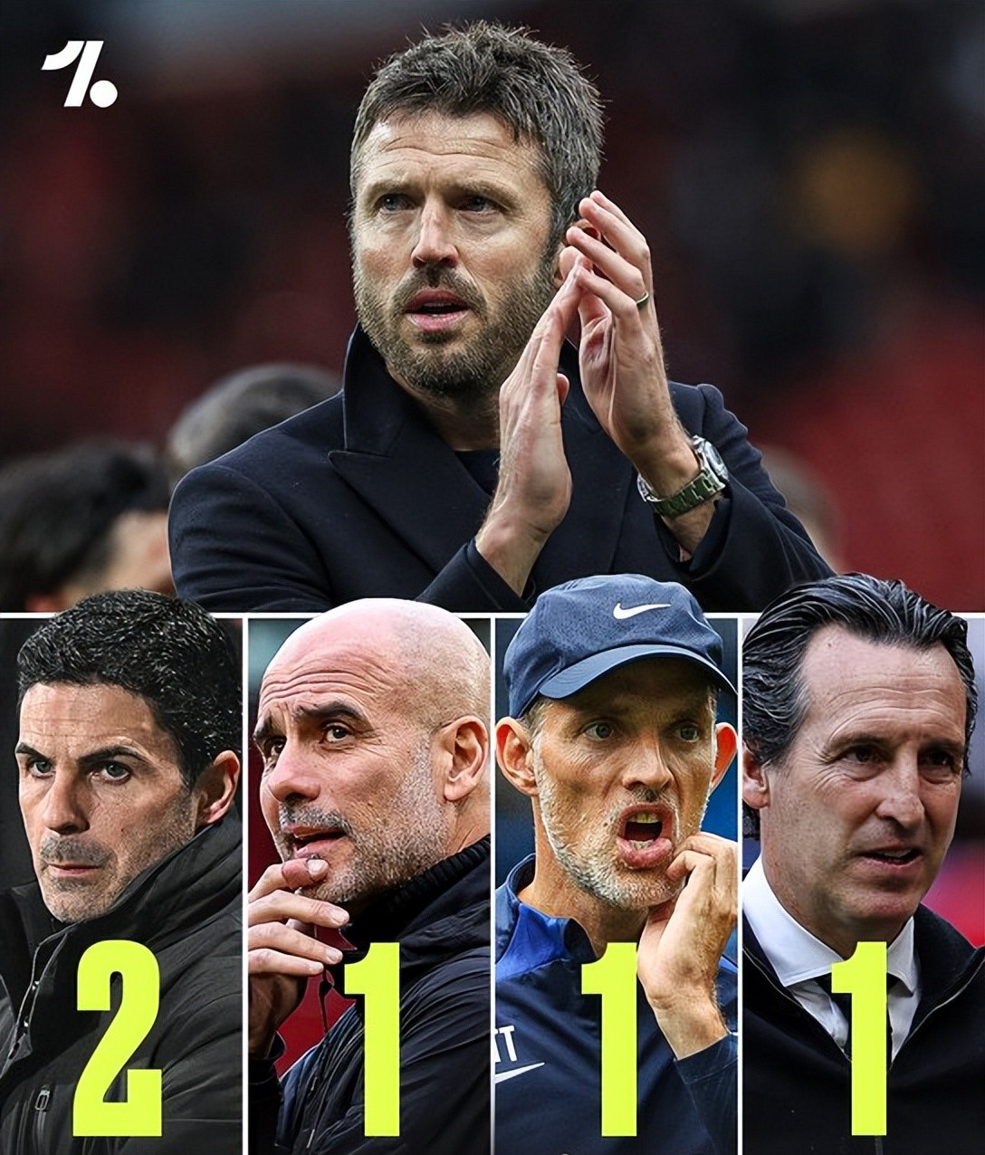 如果4胜1平的成绩还不够亮眼,或许可以换一个角度来看看卡里克所直接击败的对手--击败阿尔特塔,2次;击败瓜迪奥拉,1次;击败埃梅里,1次;打平图赫尔,1次。