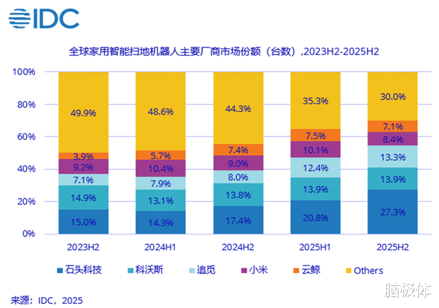 IDC 2025年数据显示,全球扫地机器人出货量前五名全部是中国品牌。这个品类的技术标准、产品形态、用户体验的基线,正在由中国企业来定义。