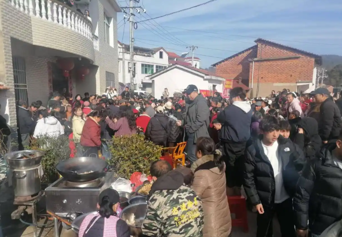 湖北百涧河村原计划20桌的宴席扩容至60桌。