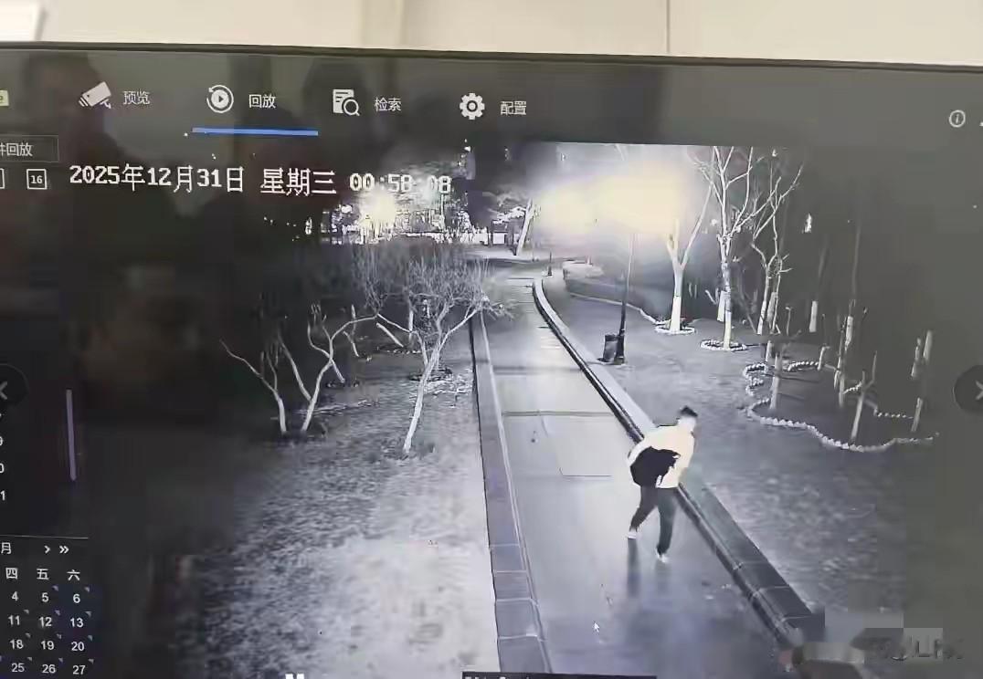 时间显示2026年1月1日零时58分,也许男子早就盯上了黑天鹅,专等夜半没人的时候下手.