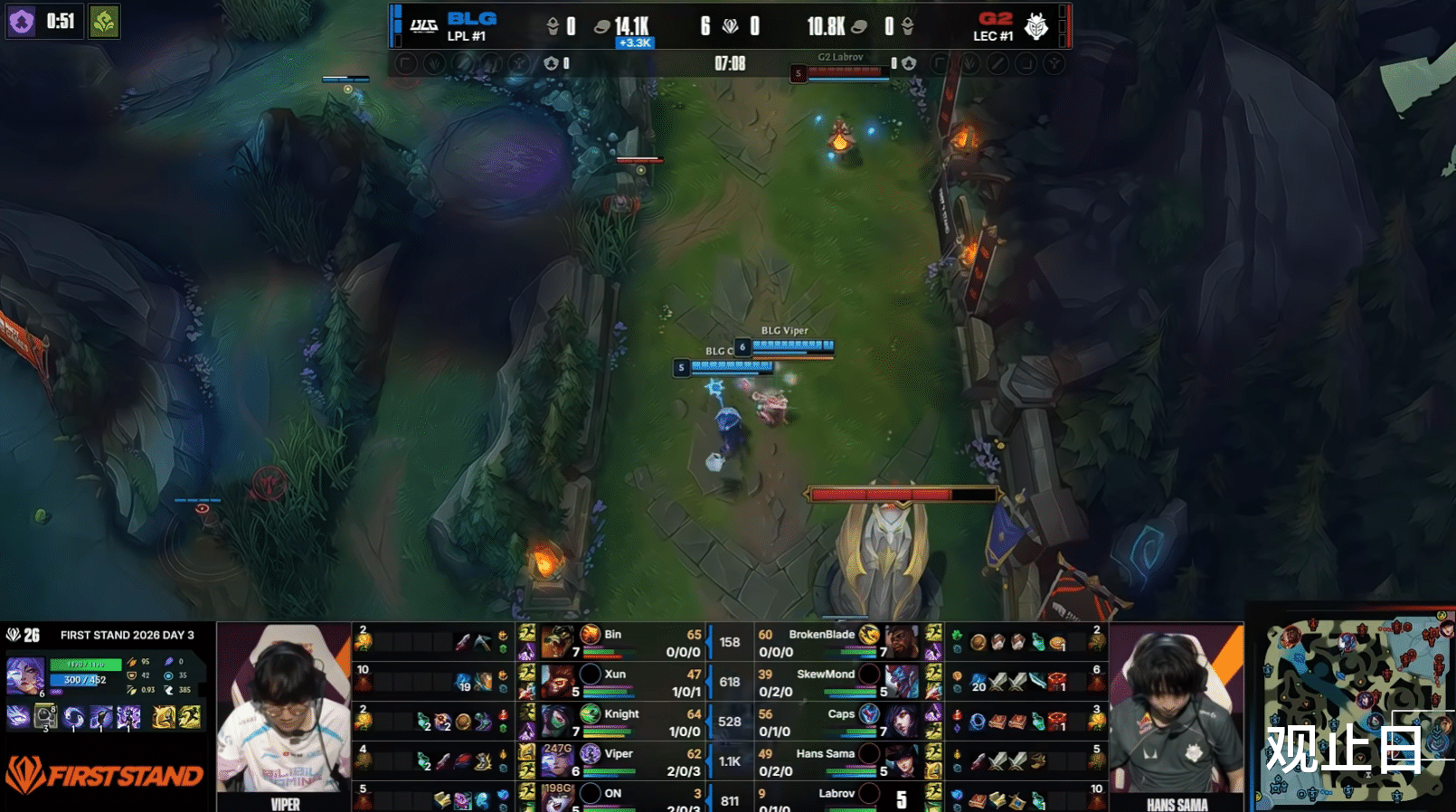 BLG 3:0 G2,一场从头到尾的“人机局”。去年被G2赢了两次的BLG,今年连本带利讨了回来——不仅横扫,还是那种碾压式的横扫。