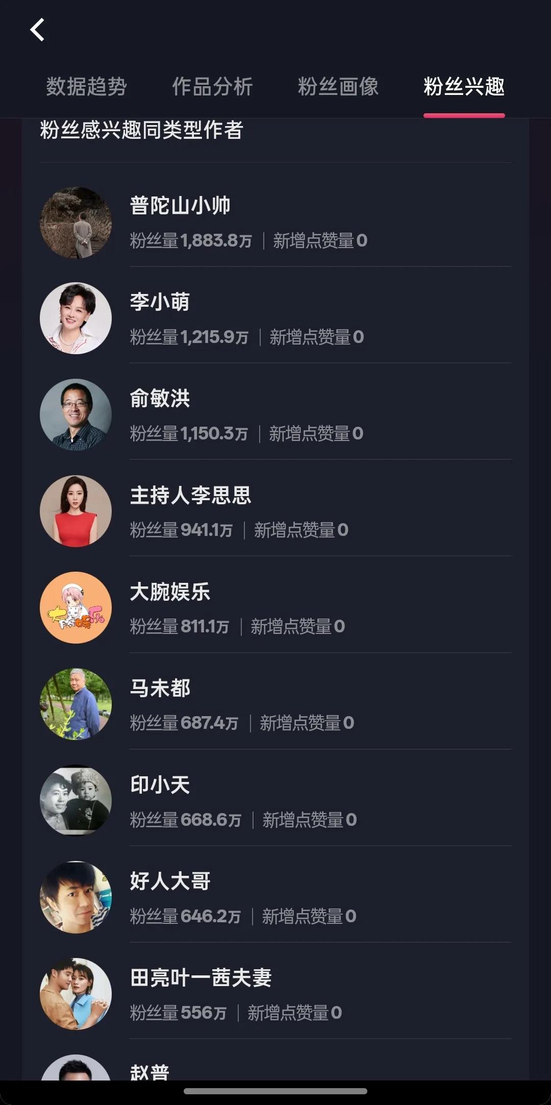 那么喜欢李亚鹏的粉丝还喜欢谁呢?以前我以为会有董宇辉呢,结果排名前十里面都没有。反而是看到李小萌,俞敏洪,李思思这些大主播。这个排在最前面的普陀山小帅是谁不了解,我竟然第一次听到。朋友们,除了李亚鹏,这些主播里面您还关注了谁?分享一下吧