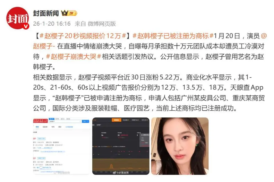 1月20日,演员赵樱子在带货直播中突然情绪失控、捂脸痛哭,当众自曝团队管理困境:每月背负数十万元人力成本,却换来员工的冷漠对待与公然顶撞,一句“他们见了我像见了仇人一样”戳中舆论焦点,更控诉“我指出问题说一句,他们就顶十句”,将艺人光鲜背后的职场矛盾赤裸裸撕开。一边是对职场委屈的共情,一边是对“流量剧本”的质疑,争议再度将她推向风口浪尖。