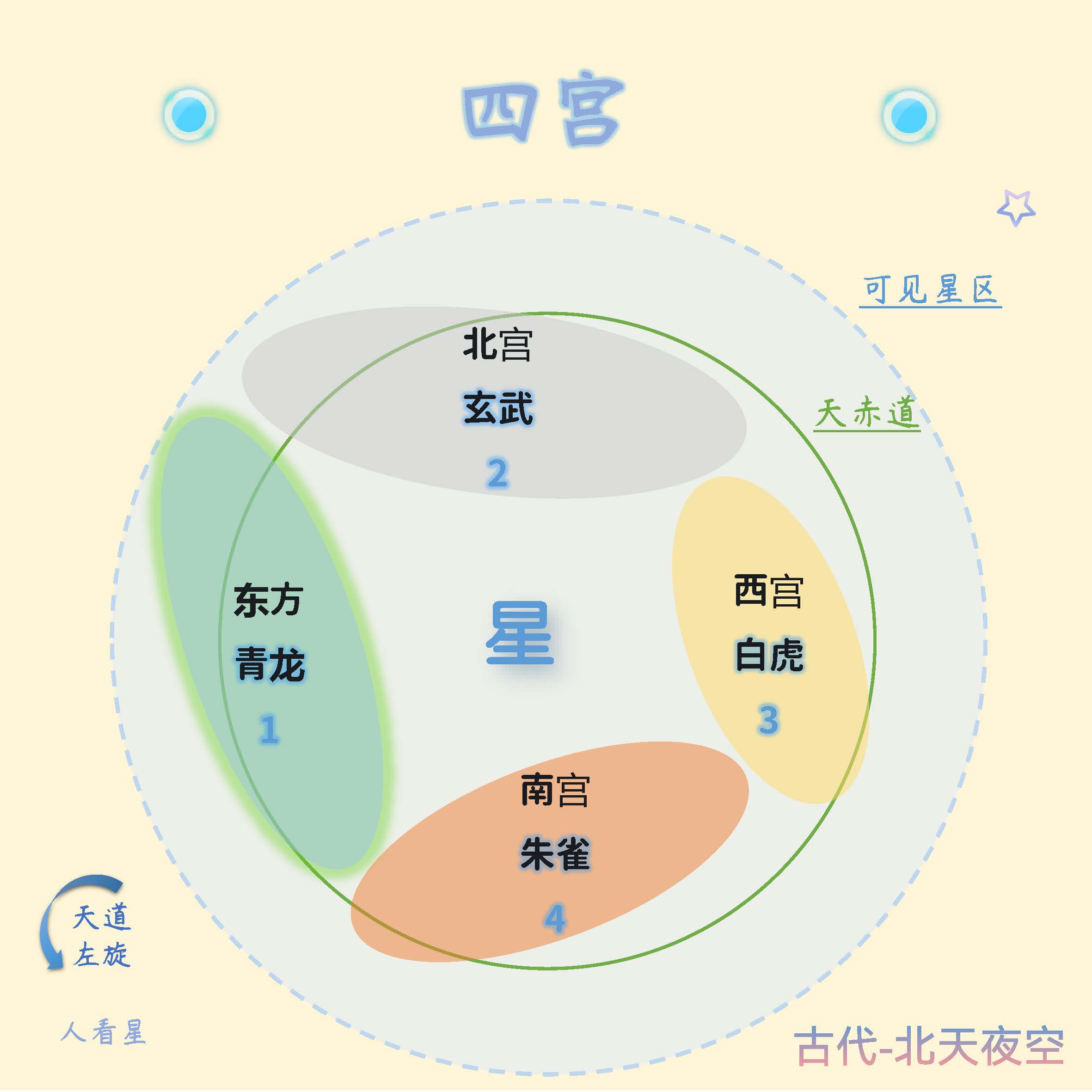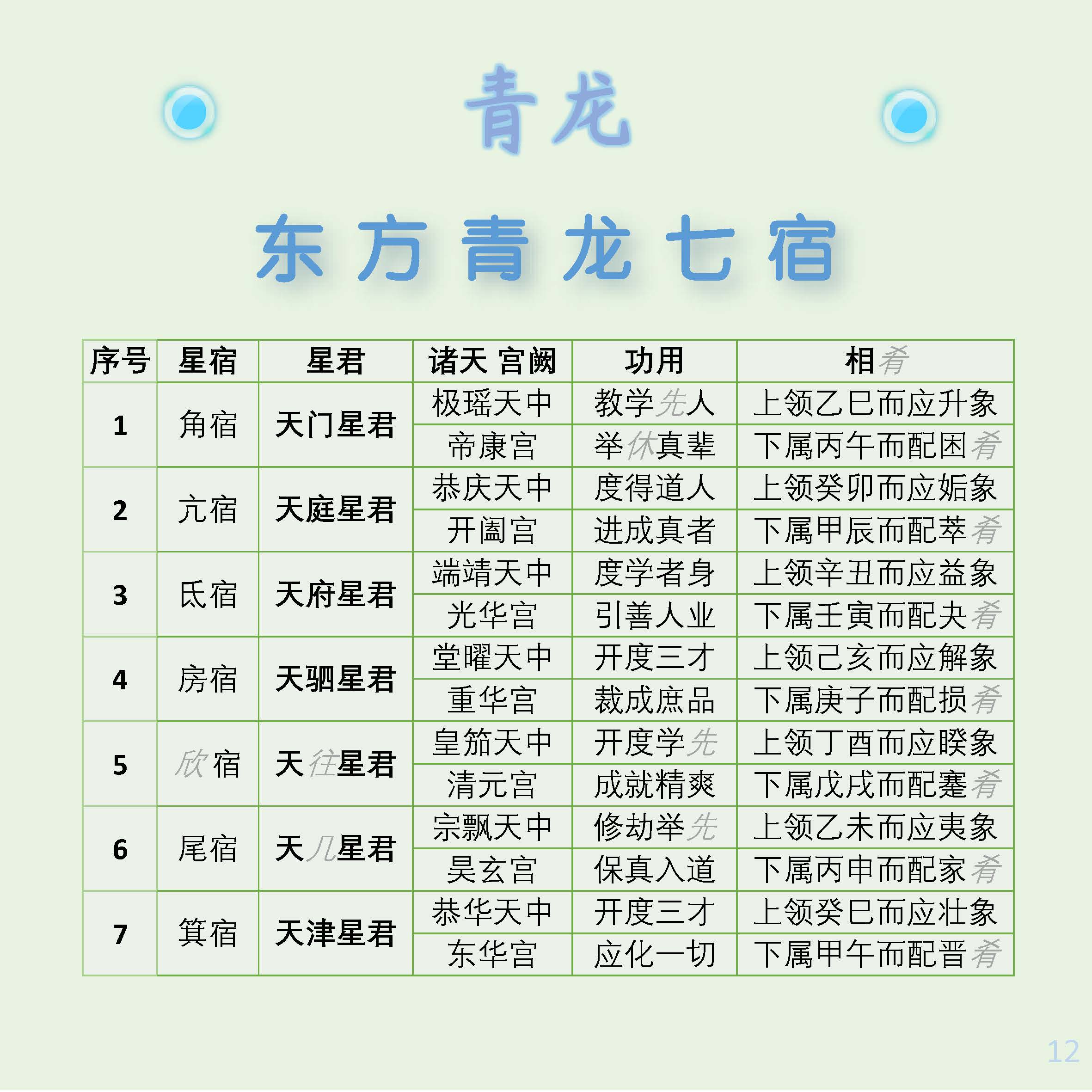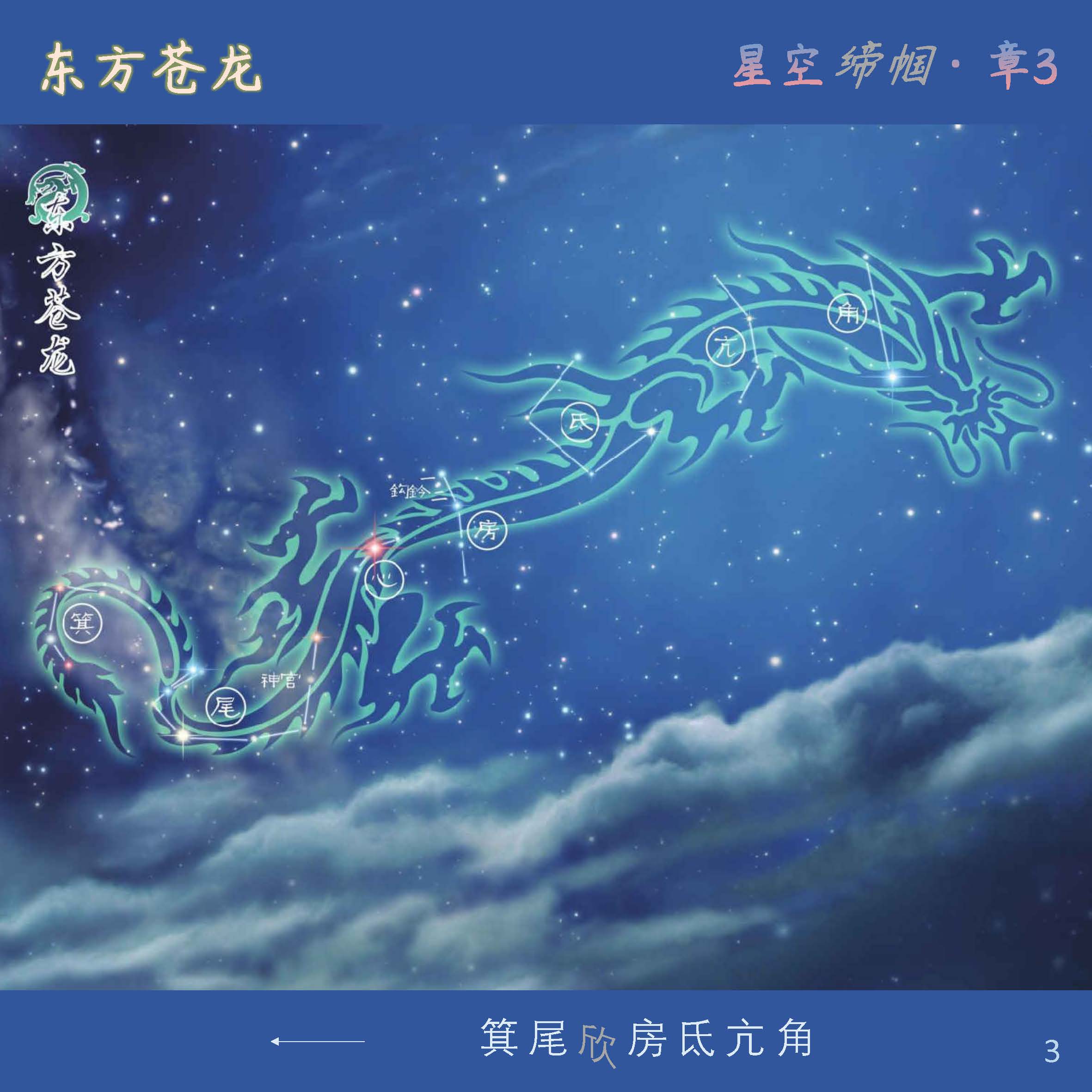 求闻:青龙七个天区恒星,有46星区,共153星。