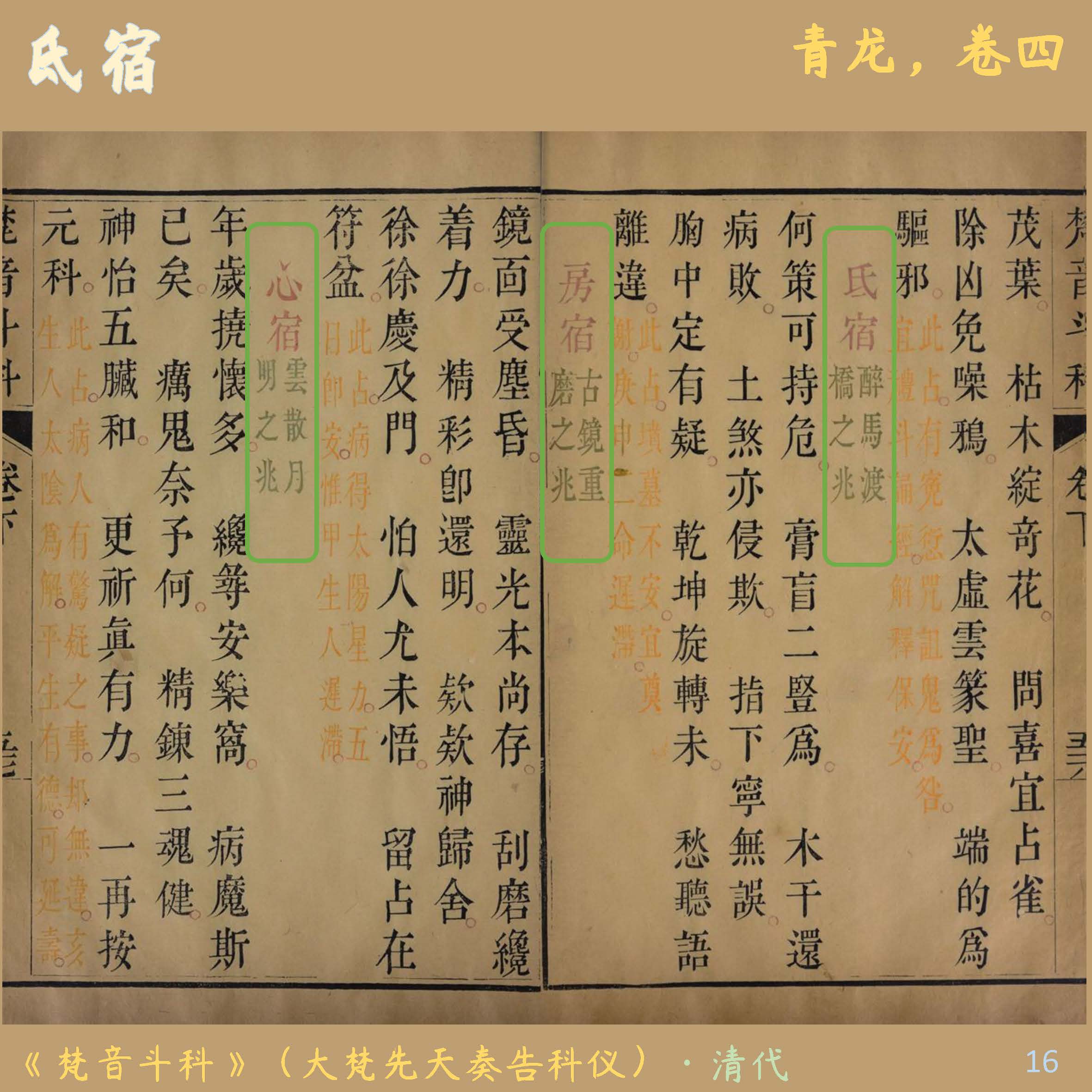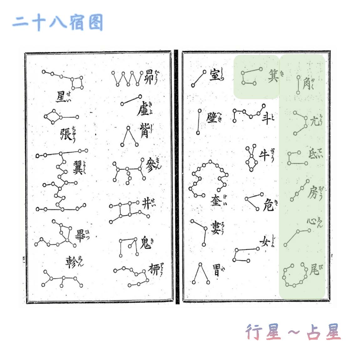 角宿、亢宿,氐宿、房宿,尾宿、箕宿