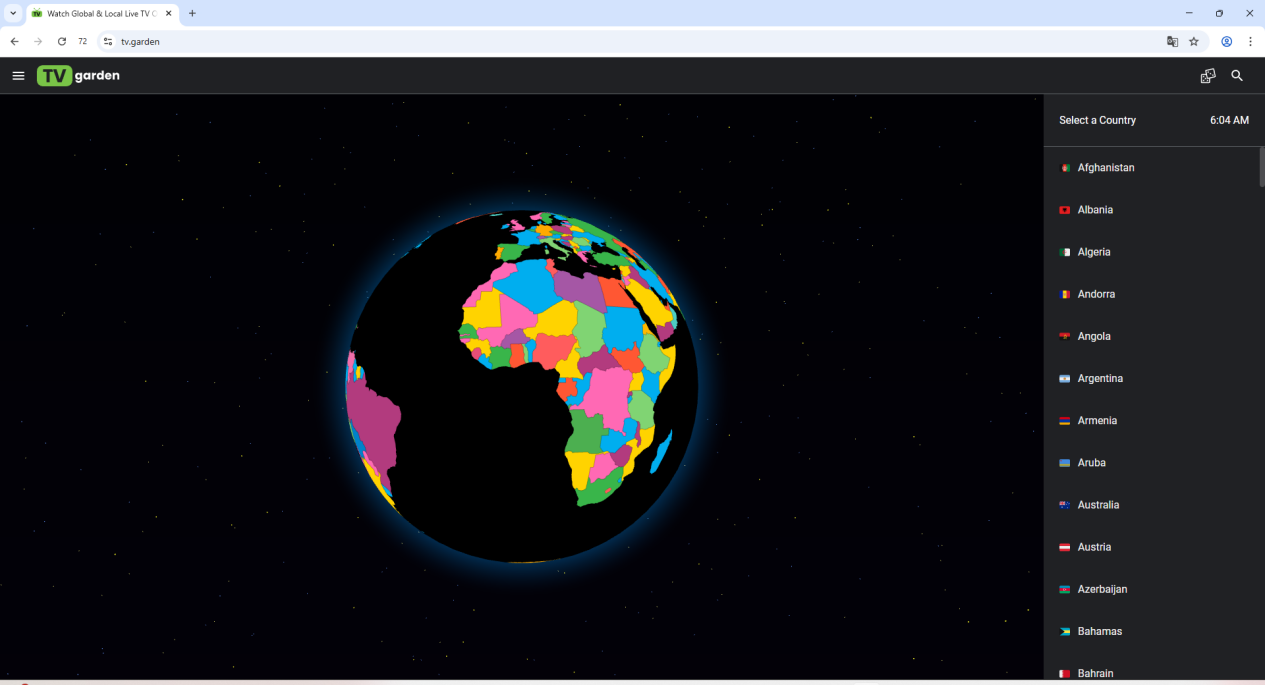 3、TV.Garden这是一个可以免费在线观看全球各国电视台直播的网站,只需要打开网页,你就会看到1个3d地球仪,轻松转动它,点击你感兴趣的任意国家,就能立刻实时观看当地的电视台直播。