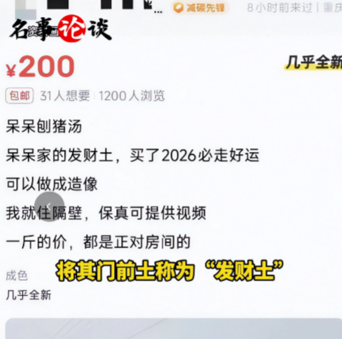 然而短短几天内,事件走向变得匪夷所思。二手交易平台上,开始出现多名卖家以“呆呆家邻居”名义,公开售卖她家门前的泥土。