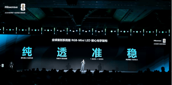 作为 RGB-Mini LED 电视的开创者与引领者,海信深耕高端显示技术迭代,直击行业 “色彩受限、光晕难消、还原不准、久用褪色” 四大痛点,为 UX2026 款打造全球首创玲珑 4 芯真彩背光技术,以 “纯、透、准、稳” 的技术优势实现 1 区控色>3 区控光的颠覆式突破,从根源上解决普通Mini LED串色、色晕、偏色等行业顽疾,推动电视画质正式迈入原生色彩时代。