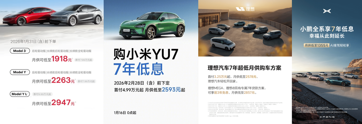 调侃归调侃,友商却从中嗅出了不一样的“危”与“机”,于是纷纷跟进。截至目前,已有特斯拉、小米、小鹏、理想四家车企推出7年低息购车政策,在行业内已然掀起了一股风潮。