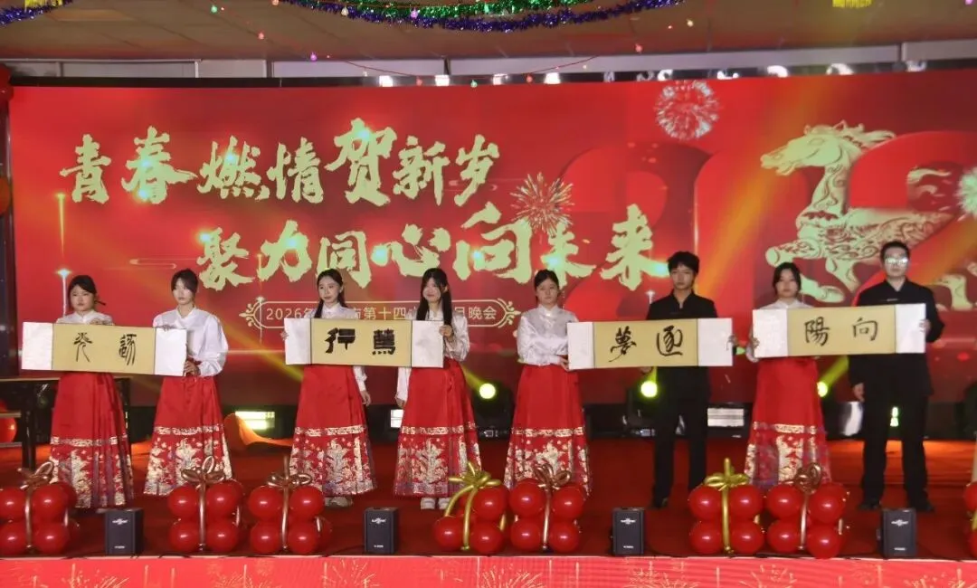 语言类与特色节目同样亮点纷呈。相声《八扇屏》凭借扎实的功底和诙谐的表演,引得全场笑声不断;快板《恩师润桃李》节奏明快,字字句句饱含对老师的感恩之情,彰显了校园尊师重教的良好风尚;小品《手机综合症》直击现实问题,以幽默的方式呼吁大家合理使用电子产品,寓教于乐;《谁是那一匹黑马》则生动展现了学子们拼搏进取、追逐梦想的精神风貌。舞台剧《东方红》重现红色经典,让师生在重温历史中传承红色基因;传统节目展演中,《墨武华章》将书法的飘逸与武术的刚劲相结合,笔墨挥洒间尽显中华传统文化魅力;《舞力全开2026》、空乘礼仪操与中国非遗剪纸服装秀联袂呈现,传统与现代碰撞出别样火花,展现了学子们多元的才华与创造力。