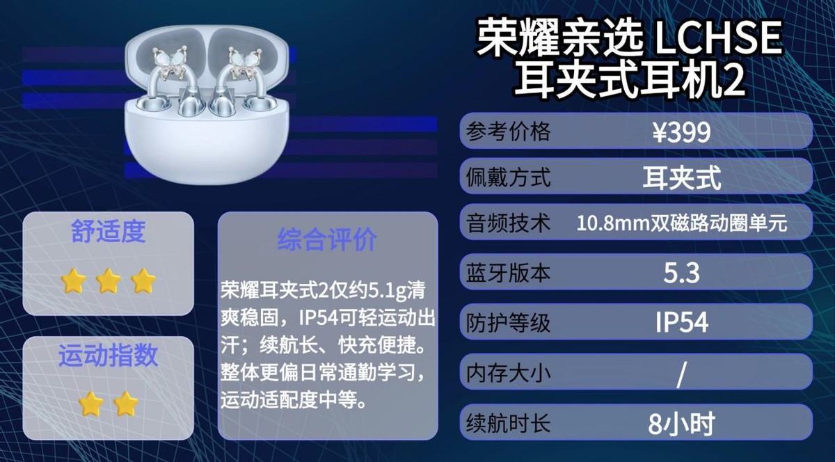 荣耀亲选LCHSE耳夹式耳机2是一款设计感较强的开放式耳机,外观有宝石感渐变光泽,整体轻巧精致,适合注重日常佩戴体验的人群。
