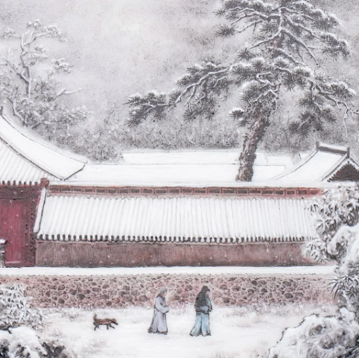 而后,雪覆山寺,瓷承雅意