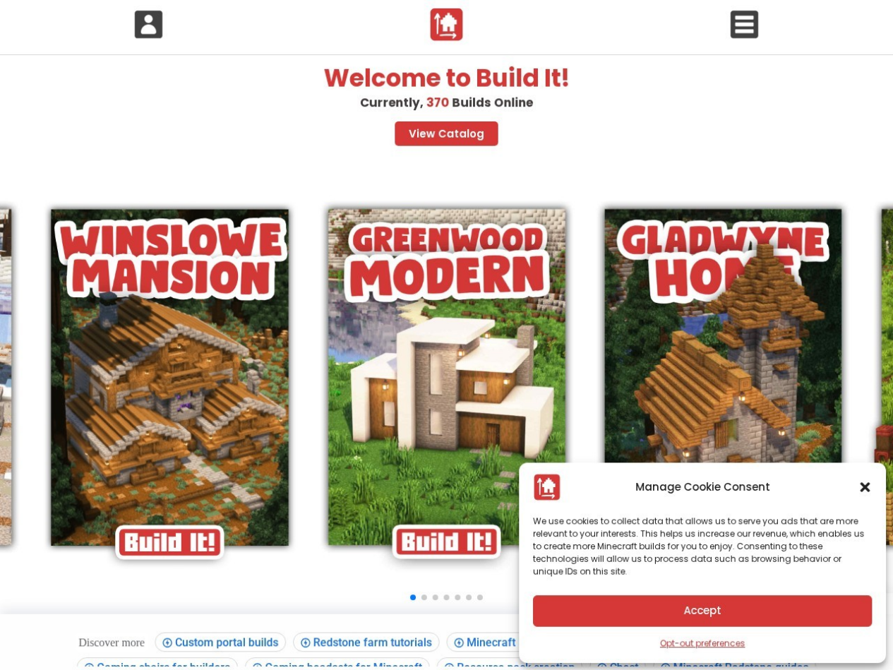 3、builditapp这是一个教你在《我的世界》里建造任何东西的宝藏网站。它目前拥有 370+ 在线构建教程,涵盖房屋类、城墙类、楼宇、室内外装饰、雕像等多种类型,每一个教程都会分步骤讲解,手把手教你如何制作,非常适合新手玩家或建筑爱好者去使用。