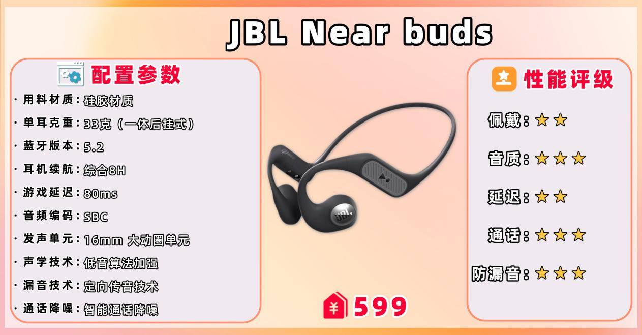 采用 16mm 大动圈单元,这在开放式耳机中尺寸还是挺大的,能为声音的表现提供更好的基础,配合 JBL 自研的低频增强算法,在低频表现上有不错的成果,不过,在表现一些高音的极细微变化时,人声不够细腻。