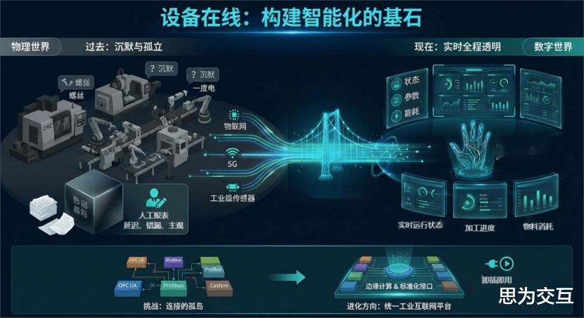当然,实现真正的“设备在线”并非易事。当前,不同品牌、不同年代的设备采用着迥异的通信协议和数据标准,形成了“连接的孤岛” 。因此,这一阶段的进化方向,必然是从连接单一设备,走向构建统一的工业互联网平台,通过边缘计算和标准化接口,实现异构设备的“即插即用”,从而为整个制造体系构建一个统一、敏锐的感知神经系统。
