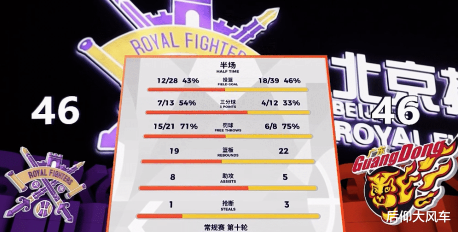 半场战罢,在罚球8-21,三分命中数4-7被北控碾压的情况下,广东依靠萨姆纳萨林杰胡明轩三人合砍的41分(萨林杰半场打满20分钟),46-46战平北控。