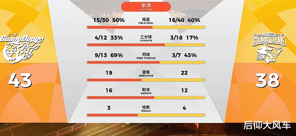 半场结束,凭借萨姆纳制造的2+1,以及胡明轩的2罚不进,约克外线2连铁,广东43-38仅领先浙江5分。萨姆纳半场15分5助3犯,徐杰11分。