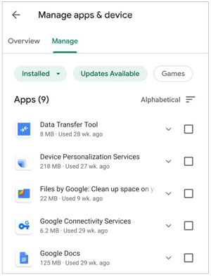 步骤 2. 点击 “管理应用程序和设备”>“管理”> 勾选您要卸载的应用程序。