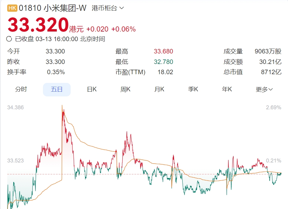 但从市场反馈来看,这份回购利好并未奏效。3月13日小米收盘价仅为33.32港元,微涨0.06%,近乎平收,全天成交额超30亿港元。拉长周期来看,自2025年6月股价触及高位后,小米累计跌幅超四成,即便期间公司多次大额回购,也未能阻挡股价持续下探。