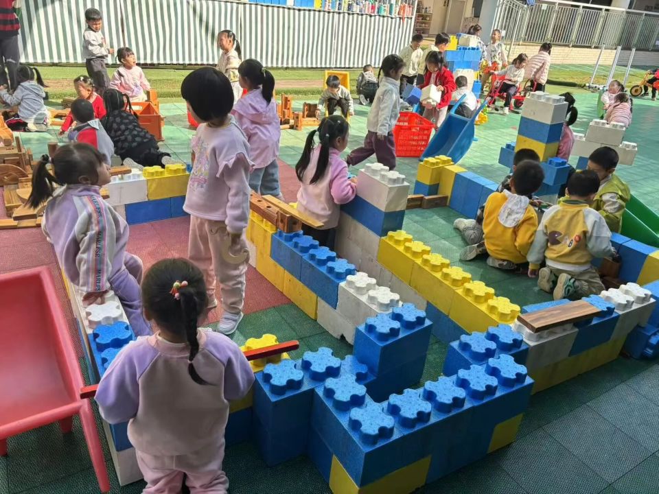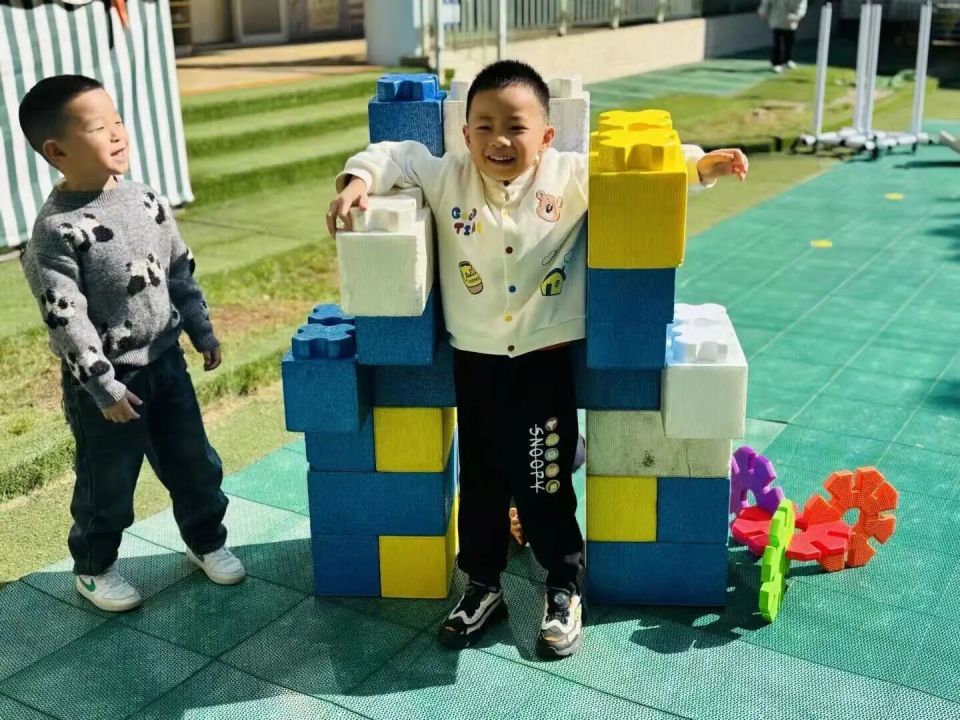 积木区里,孩子们化身小小工程师,忙得热火朝天:“看!这是机器人商店,里面卖的都是厉害的智能机器人!”“我造了智能快递车,能把快递直接送到家,不用大人跑腿啦!”“这是冲天炮飞船,想去哪就去哪,超级快!”
