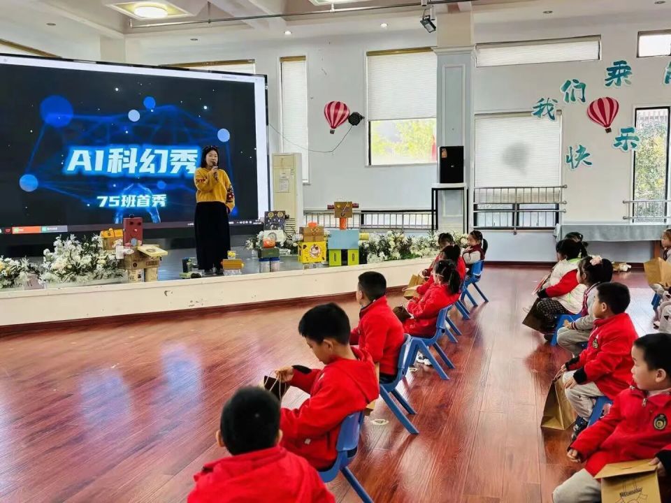 课程尾声的“我的AI作品秀”上,每个孩子都自信登台,展示自己的创意成果,用稚嫩的语言介绍作品的功能与心愿。小小的舞台上,闪耀着童真与智慧的光芒。
