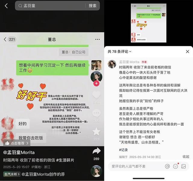 孟羽童的表现也很有意思,一边吃着格力的小火锅,一边说自己"会不自觉模仿董明珠",还大谈董姐的榜样力量。这波彩虹屁放得,比她在职时还要专业!不过她说的那句"任何工作都有痛苦挣扎的部分",倒是道出了职场新人的心声。想想也是,从"董明珠接班人"到被全网群嘲,再到如今重获青睐,这过山车般的经历够写本职场生存指南了。