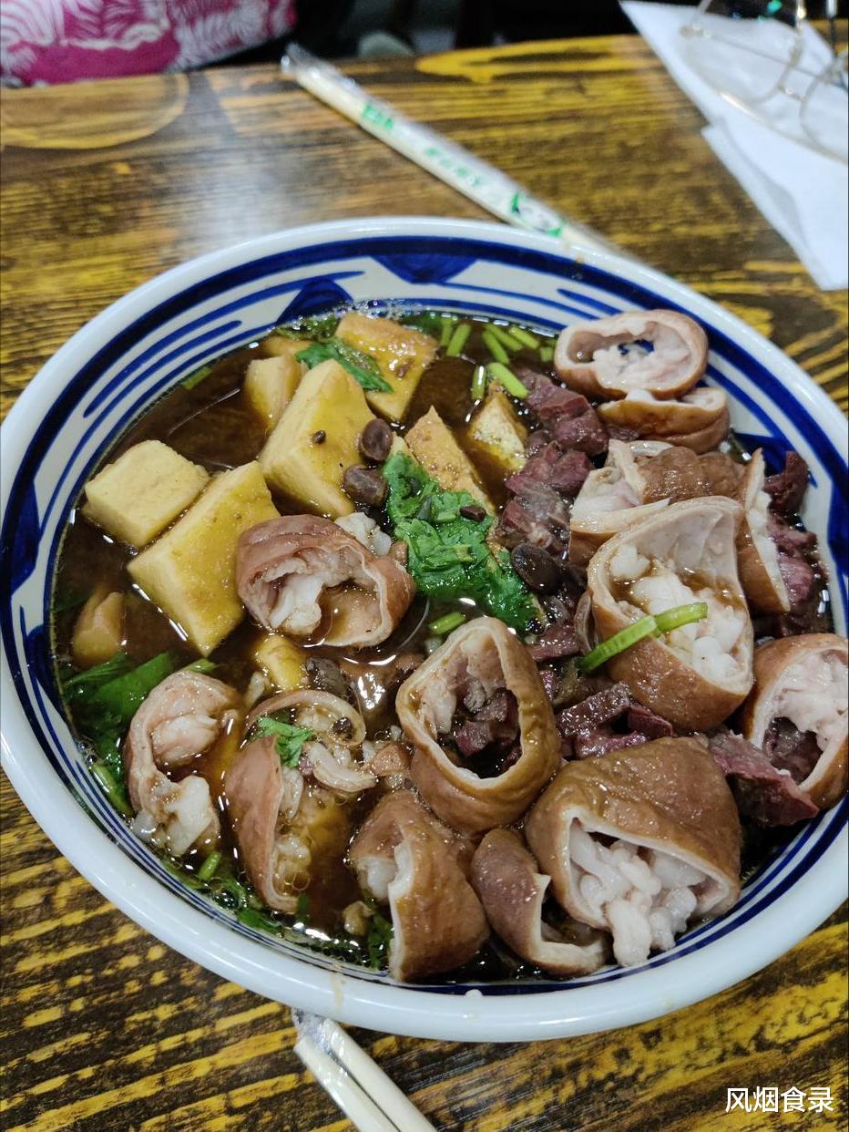 肠臊经花椒山奈慢炖去腥,旺臊现采现烫嫩如豆腐,脆哨用五花肉炸至酥香,