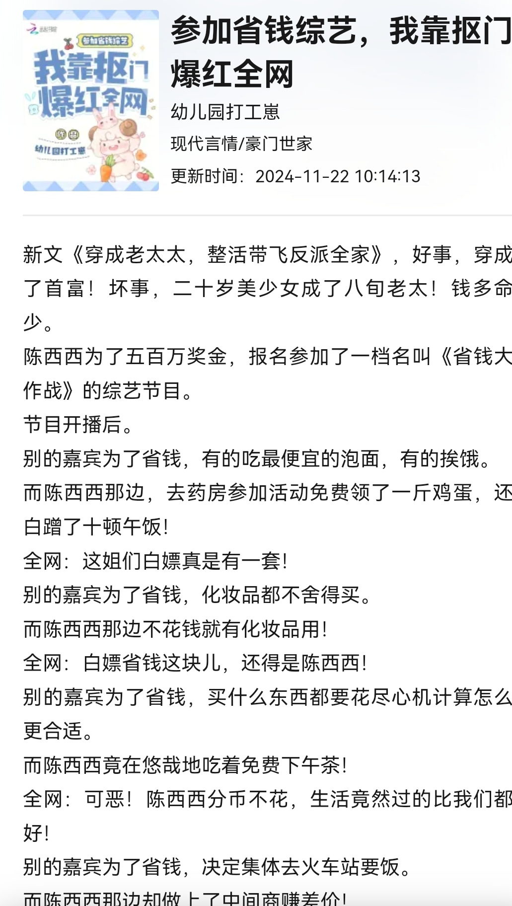 参加省钱综艺,我靠抠门爆红全网