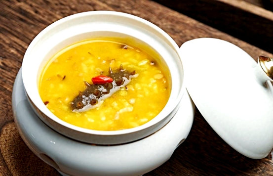 亮点:生姜暖身散寒,红枣补气养血,小米养胃,海参温和滋补。一碗喝下去全身暖洋洋,手脚冰凉明显好转。
