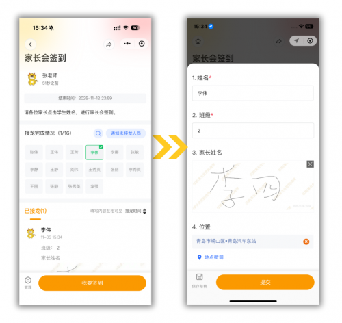 对于传统签到难统计进度、还需手动整理签到记录等问题,接龙管家更是全都解决了: