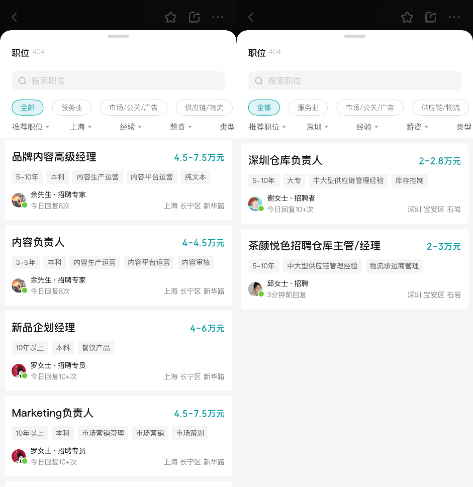 近日,BOSS直聘信息显示,茶颜悦色正在上海、深圳开启岗位招聘。在上海,茶颜悦色以4.5万~7.5万元的月薪招聘Marketing(市场)负责人,4.5万~7.5万元的月薪招聘品牌内容高级经理;在深圳,茶颜悦色以2万~3万元的月薪招聘仓库主管与经理、2万~2.8万的月薪招聘仓库负责人。