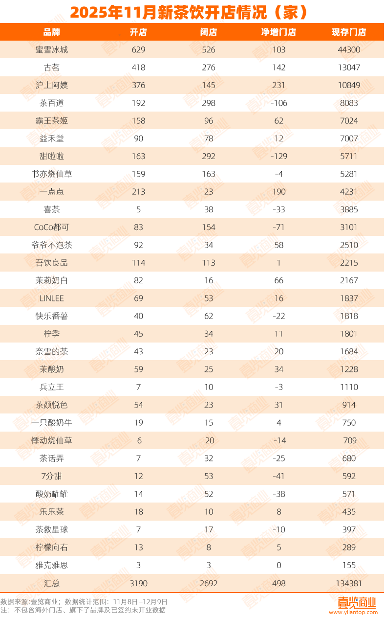 相比同期霸王茶姬超7000家、茉莉奶白超2100家、爷爷不泡茶超2500家的全国门店网络,茶颜悦色的布局仍显集中且数量较少。